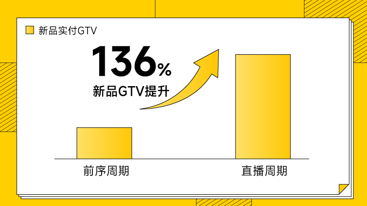 某餐饮品牌新品发布周期内,通过美团直播间做品牌新品发布。分别通过品牌私域预热、站外种草合作、线上线下互动结合,最终官方直播间销量引爆。带动品牌新品GTV提升超136%。